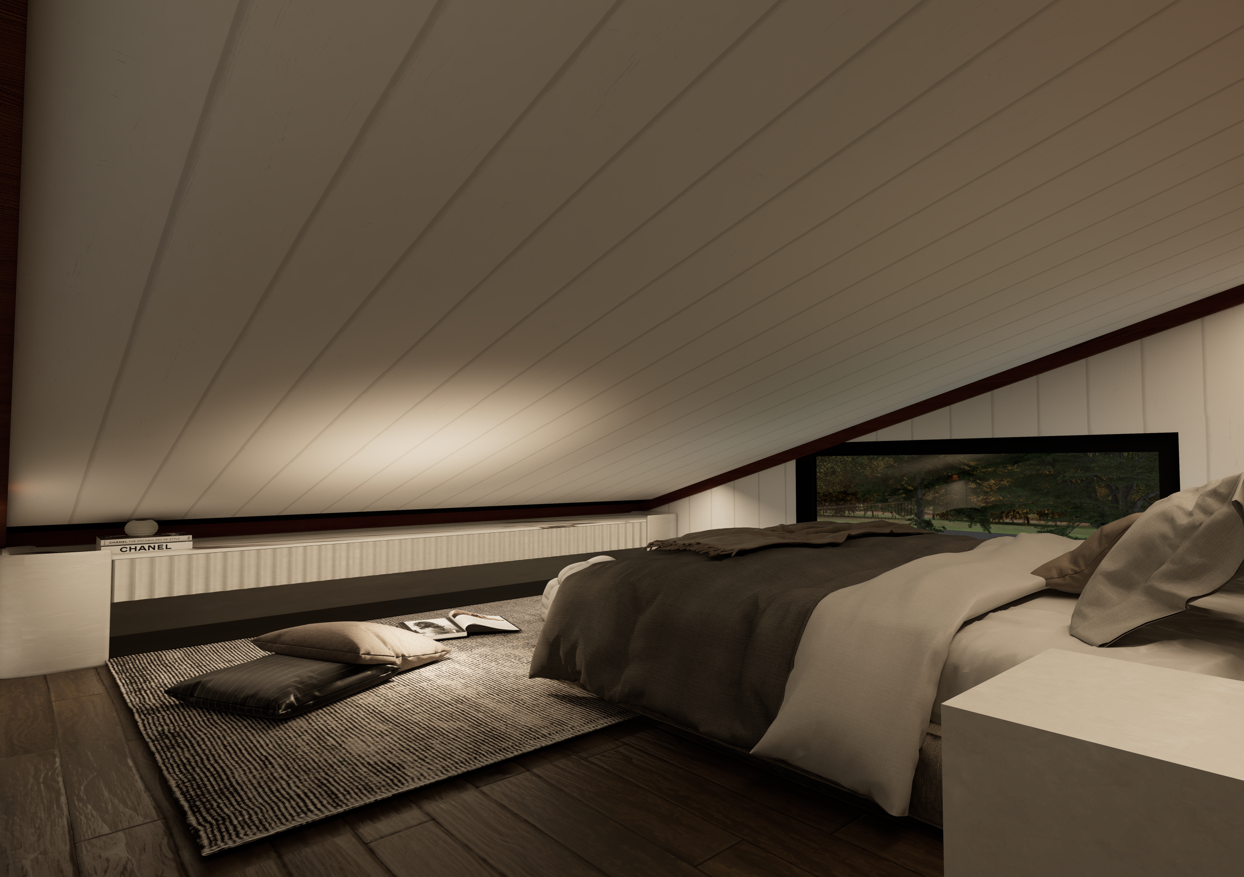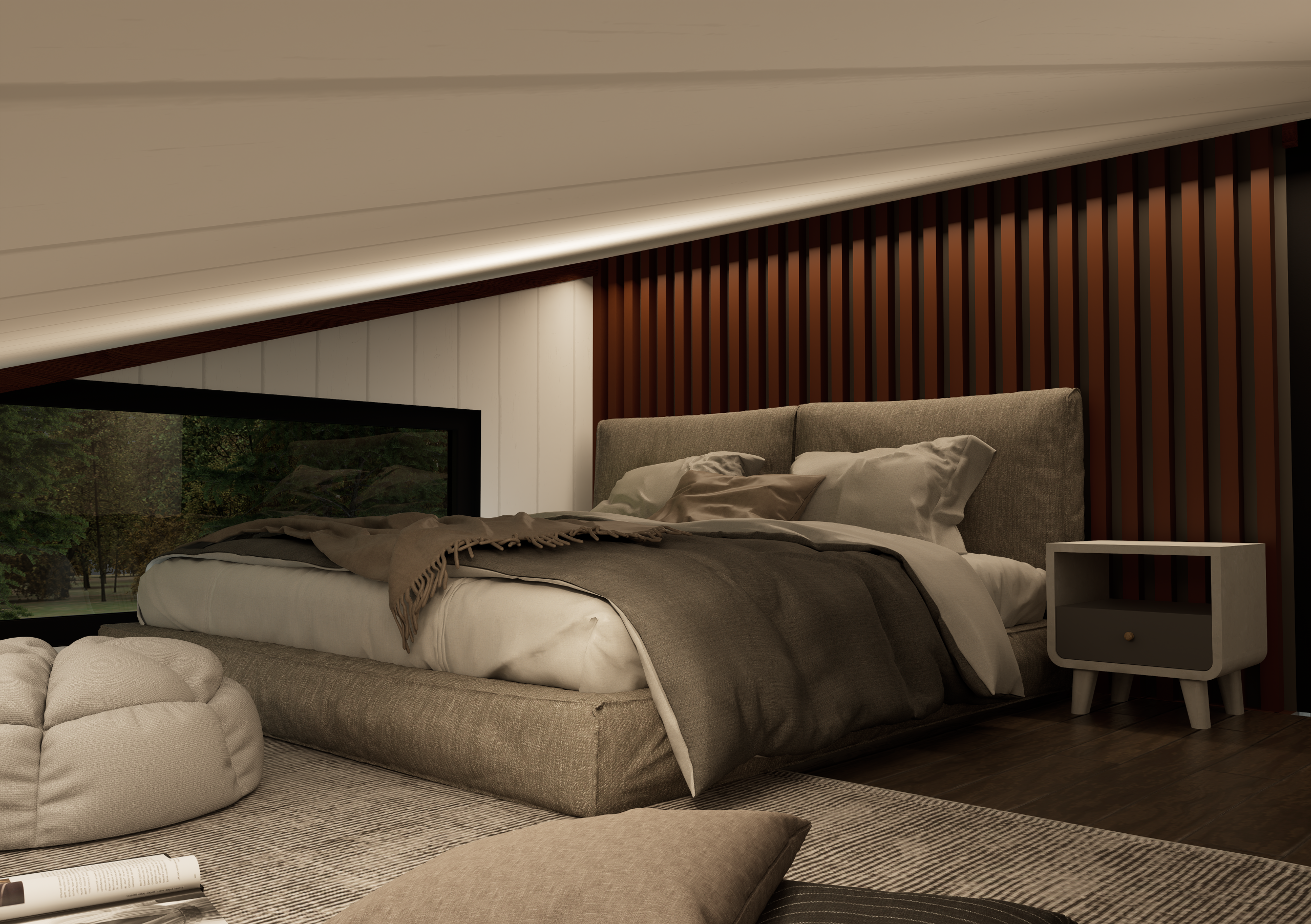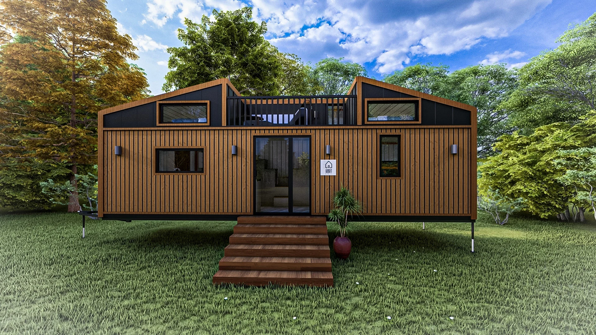 Galvaniz çelik konstrüksiyon, taş yünü yalıtım ve enerji verimli pencereleri sayesinde dört mevsim konfor sağlar. Alt katta ayrı yatak odası, açık plan salon–mutfak ve modern banyo; loft katlarda ise ek yatak veya dinlenme alanları ile gerçek 2+1 düzen sunar. Taşınabilir römork sistemi ve modern ahşap dış cepheyle hem tatil evi hem de kalıcı konut olarak mükemmel bir çözümdür.