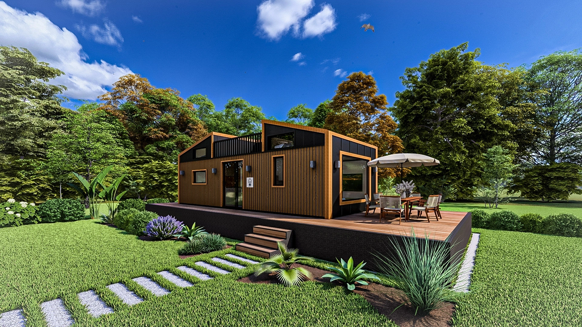 Harmony 9M, modern mimarisi, ferah iç hacmi ve çift loft avantajıyla hem tatil evi hem de kalıcı yaşam için yüksek konfor ve estetik sunan bir tiny house modelidir.